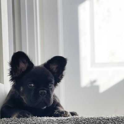 Loki is a gorgeous blue and tan long haired French Bulldog.